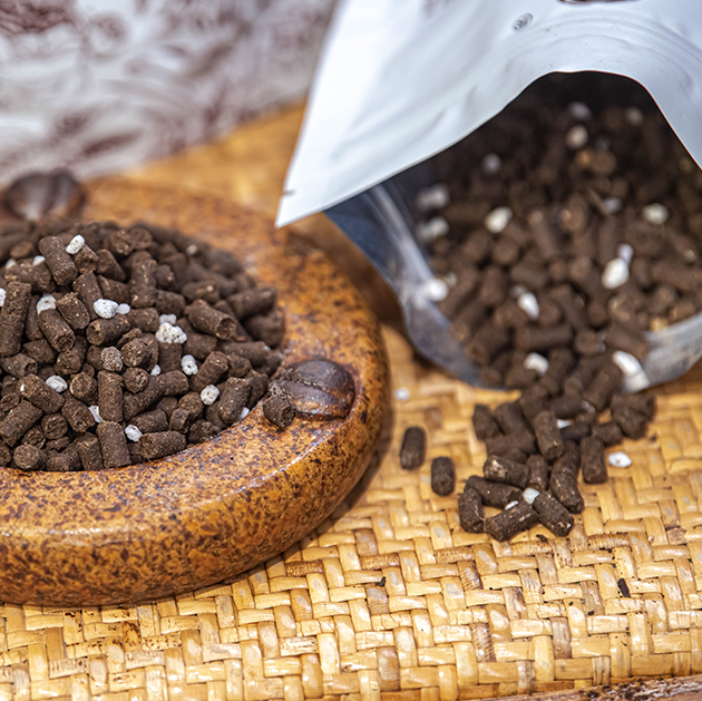 本品選用無抗養(yǎng)殖雞糞在大型全自動密封發(fā)酵罐好氧高溫發(fā)酵獲取原材料,將此原料輸送至陳化車間復配有益微生物功能菌株與營養(yǎng)成分進行二次發(fā)酵,再通過全自動生產作業(yè)線擠壓造粒而成。